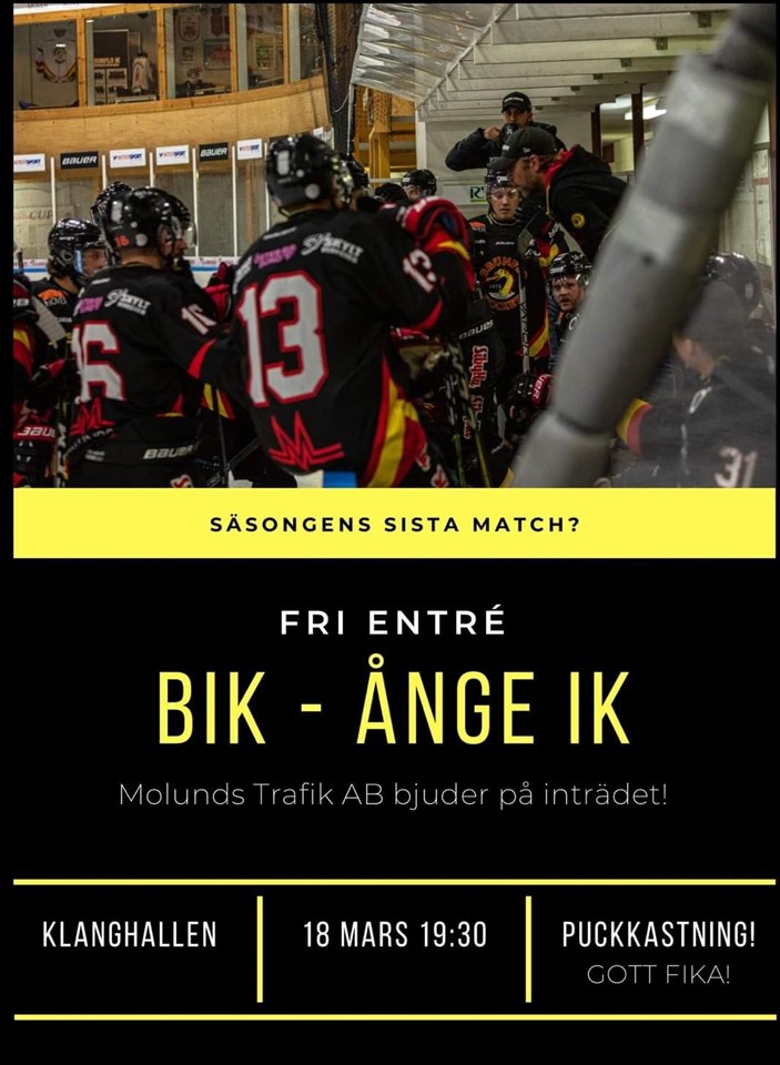 På fredag kl 19:30 spelar A-laget en helt avgörande match mot Ånge IK om vem som kniper andraplatsen i Alltvåan. I och med detta bjuder Molunds Trafik AB på entrén. Kom och stötta laget, köp en puck och ta en fika. Matchstart 19:30.